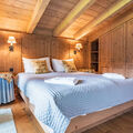 "Orleans 1", 5-room apartment 147 m2 on 1st floor. Spacious and bright, very comfortable and tasteful furnishings: entrance hall. On the lower ground floor: shower, sep. WC, Sauna. Upper floor: open large living/dining room with Scandinavian wood stove, dining nook, satellite TV, international TV channels and flat screen. Exit to the balcony. 2 double bedrooms, each room with shower/WC. Exit to the balcony. 1 double bedroom with bath/shower/WC. Exit to the balcony. 1 room with 2 x 2 bunk beds. Large kitchen-/living room (oven, dishwasher, 4 ceramic glass hob hotplates, toaster, kettle, microwave, freezer, electric coffee machine). Parquet floors, natural stone floors. Comfortable furnishings in the country house style. Large balcony. Balcony furniture. Very beautiful panoramic view of the mountains and the countryside. Facilities: iron, children's high chair, baby cot for up to 2 year olds, hair dryer. Internet (WiFi, free). Please note: non-smoking house. Smoke alarm, fire extinguisher. The double beds are "king size beds. 50612-000971-2020