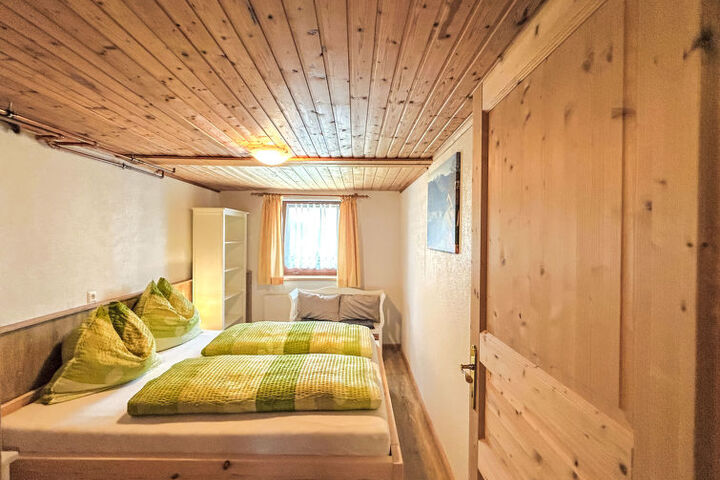 5-room chalet 93 m2 on 2 levels. Simple and cosy furnishings: 1 double bedroom with shower. Living/dining room with dining nook and satellite TV (flat screen), radio. Open kitchen (oven, dishwasher, 4 ceramic glass hob hotplates, microwave). Sep. WC. On the lower ground floor: 2 double bedrooms. 1 small room with 2 beds. Shower, sep. WC. Balcony, terrace roofed. Marvellous view of the mountains and the valley. Please note: maximum 2 pets/ dogs allowed. Smoke alarm.