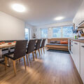 8-room apartment 200 m2 on 2 levels. Spacious, comfortable and modern furnishings: large living/sleeping room with 1 pull-out bed and satellite TV. 1 large double bedroom with 1 double bed and satellite TV. 1 large room with 1 bed, 1 double bed, shower/WC and satellite TV. Alcove with 1 pull-out bed (2 pers.). 1 large room with 1 bed, 1 double bed, shower/WC and satellite TV. 1 large room with 1 bed, 1 double bed and satellite TV. 1 large double bedroom with 1 double bed, shower/WC and satellite TV. Large kitchen-/living room (oven, 4 ceramic glass hob hotplates, toaster, kettle, freezer, electric coffee machine). 2 showers/WC. Heating. Large terrace 50 m2, large terrace 20 m2. Terrace furniture, barbecue. Very beautiful panoramic view. Facilities: Internet (WiFi). Parking (5 cars). E-charging station. Please note: suitable for families. Non-smokers only. Maximum 1 pet/ dog allowed. There are two comparable eat-in kitchens, each with a sofa bed. Instead of an enclosed bedroom, some sleeping areas are located in an open-plan area (gallery, alcove, etc.).