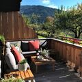 "Feldkasten", 2-room chalet 50 m2 on 2 levels. Bright, partly with sloping ceilings, fully renovated in 2021, very tasteful and cosy furnishings: large kitchen-/living room (oven, dishwasher, 4 ceramic glass hob hotplates, toaster, kettle, microwave, electric coffee machine, Capsules for coffee machine (Nespresso)) with 1 double sofabed (160 cm, length 200 cm), dining nook and satellite TV (flat screen), electric heating. Exit to the terrace. Upper floor: (steep stair), 1 open large double bedroom with 1 double bed (180 cm, length 200 cm), shower/WC and satellite TV (flat screen), electric heating. Exit to the balcony. Wooden floors. Comfortable furnishings in the country house style. Large terrace 18 m2. Terrace furniture, barbecue, sitting area. Marvellous panoramic view of the mountains and the valley. Facilities: hair dryer. Internet (WiFi). Please note: non-smoking house. Smoke alarm. Bed layout is flexible. There are more sleeping options available than the maximum number of people allowed which may, however, not be exceeded.