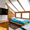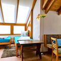 "Rosi Studio", 1-room apartment 35 m2, on the top floor. Bright: 2nd upper floor: living/sleeping room with 2 beds, dining nook and satellite TV. Exit to the balcony. Kitchenette (4 hot plates, microwave, electric coffee machine). Shower/WC. Oil heating. Please note: non-smokers only. Maximum 2 pets/ dogs allowed.