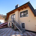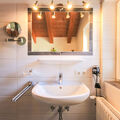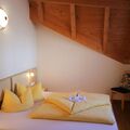 "Bergblick", 6-room house 160 m2 on 2 levels. Cosy and wooden furniture furnishings: upper floor: 1 room with 1 double bed, hand-basin and satellite TV. 1 room with 1 bed (90 cm, length 200 cm), 1 double bed and hand-basin. 1 double bedroom with 1 bed (90 cm, length 200 cm), 1 double bed. Shower/WC. 2nd upper floor: 2 double bedrooms, each room with shower/WC. 1 room with 1 french bed (140 cm, length 200 cm). Large kitchen-/living room (oven, dishwasher, 4 ceramic glass hob hotplates, toaster, kettle, freezer, electric coffee machine) with dining table, satellite TV and radio. Shower/WC. Carpet. Large terrace 60 m2. Terrace furniture. Beautiful panoramic view of the mountains and the valley. Facilities: children's high chair, baby cot, hair dryer. Internet (WiFi, free). Parking (roofed, 4 cars) at 100 m. Please note: non-smokers only. Private entrance, smoke alarm, fire extinguisher.