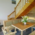 "Jung", 4-room house 120 m2 on 2 levels. Cosy and wooden furniture furnishings: living room with open-hearth fireplace (only for decoration), dining table, dining nook, satellite TV and hi-fi system. Exit to the terrace. 1 room with 2 beds and bath/shower/WC. Open kitchen (oven, dishwasher, 4 ceramic glass hob hotplates, toaster, kettle, microwave, electric coffee machine). Sep. WC. Underfloor heating. Upper floor: 1 room with sloping ceilings with 2 beds. 1 room with sloping ceilings with 1 double bed. Exit to the balcony. Shower/WC. Oil heating. Balcony, 2 terraces partly covered. Terrace furniture, barbecue (portable). Very beautiful panoramic view of the mountains. Facilities: children's high chair, baby cot. Internet (WiFi, free). Please note: non-smoking house. Maximum 1 pet/ dog allowed. When there are less than the maximum number of guests staying at the property, not all of the housing units will be available for use.