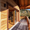 "Banksia", 5-room chalet 180 m2 on 2 levels on 2nd floor, south-east facing position. Spacious, comfortable and tasteful furnishings: entrance hall. Large living/dining room with panoramic window with cable TV, flat screen, DVD and wood-burning stove. Exit to the balcony, to the terrace, south-east facing position. 1 room with 1 french bed (180 cm, length 200 cm), separate WC, shower, double hand-basin and with corner bath. Open kitchen (dishwasher, 4 induction hot plates, microwave, electric coffee machine, Capsules for coffee machine (NESPRESSO) extra, raclette grill, fondue Set (chinoise, cheese)). Upper floor: 1 room with 1 french bed (180 cm, length 200 cm). 1 room with 2 beds (90 cm, length 200 cm). 1 room with 2 beds (90 cm, length 200 cm). Shower/WC, double hand-basin. Balcony 23 m2, south-east facing position, terrace 15 m2, west facing position. Terrace furniture. Beautiful view of the mountains and the resort. Facilities: washing machine, dryer, baby cot for up to 3 year olds. Internet (WiFi, free). Parking (roofed, 1 car) at the house. Please note: suitable for families. Non-smokers only.
