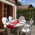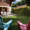 "Véronique", 5-room chalet 130 m2 on 2 levels, south facing position. Rustic and wooden furniture furnishings: large living/dining room with open-hearth fireplace and cable TV. Exit to the terrace. Open kitchen (oven, 4 ceramic glass hob hotplates, kettle, electric coffee machine, Capsules for coffee machine (Twin) extra, raclette grill, fondue Set (cheese)). Sep. WC. Upper floor: 1 room with 1 french bed (180 cm, length 200 cm). 1 room with 1 pull-out bed (2 pers. 2 x 90 cm, length 190 cm). 2 rooms, each room with 1 bed (90 cm, length 190 cm). Shower/WC. South facing position. Terrace furniture. View of the mountains. Facilities: washing machine, iron, hair dryer, logs (free). Internet (WiFi, free). Parking (1 car) at the house. Please note: non-smokers only.