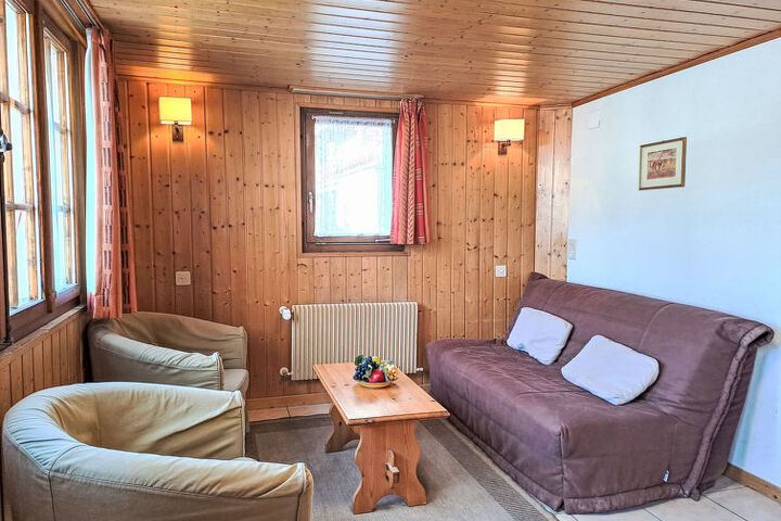 "Rousserolles rez gauche", 2-room apartment 30 m2, on the ground floor, south facing position. Partly renovated in 2024, practical furnishings: small living/dining room with 1 double sofabed (140 cm, length 180 cm), cable TV. 1 room with 2 beds (90 cm, length 200 cm). Small kitchenette (dishwasher, 4 induction hot plates, toaster, kettle, microwave, electric coffee machine, fondue Set (cheese)). Exit to the patio. Shower/WC. Garden, lawn. Terrace furniture. Partial view of the mountains and the countryside. Facilities: hair dryer. Internet (WiFi, free). Parking (1 car) at the house. Please note: non-smokers only.