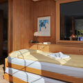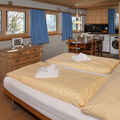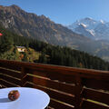 "Jungfrau a d Ledi", 3-room chalet 75 m2. Spacious, partly renovated, modern and tasteful furnishings: living/dining room 30 m2 with 1 bed (90 cm, length 190 cm), dining table, cable TV and international TV channels (flat screen), radio and CD-player. Exit to the balcony, south facing position. 1 room 14 m2 with 2 beds (90 cm, length 190 cm). Open kitchen (oven, dishwasher, 4 ceramic glass hob hotplates, toaster, kettle, electric coffee machine, Capsules for coffee machine (Nespresso) extra). Shower/WC. Oil heating. On the lower ground floor: (exterior staircase) 25 m2, 1 room with 2 beds (90 cm, length 200 cm). Exit to the patio. Sep. WC. Balcony furniture, deck chairs (2). Marvellous panoramic view of the mountains and the valley. Facilities: washing machine, dryer (extra). Internet (WiFi, free). Please note: one double bedroom is outside the apartment. Non-smoking house. Maximum 1 pet/ dog allowed. No internal connecting door between the floors.