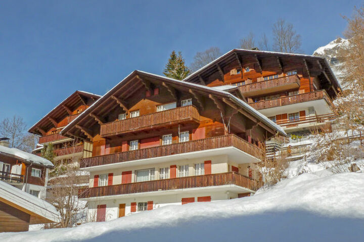Chalet "Plein Soleil". Below Wengen 600 m from the centre of Wengen, in a quiet, sunny position on a slope. In the house: central heating system. Pre-arrival grocery service. Shop, supermarket 600 m, restaurant 300 m, bakery 600 m, 7 minute walk to the centre, bus stop "Lauterbrunnen (by train)" 3.6 km, railway station "Wengen" 600 m. Cable car, skisport facilities 600 m. Well-known lakes can easily be reached: Thunersee 13 km, Brienzersee 13 km. Please note: car-free holiday complex. Arrival via mountain railway.