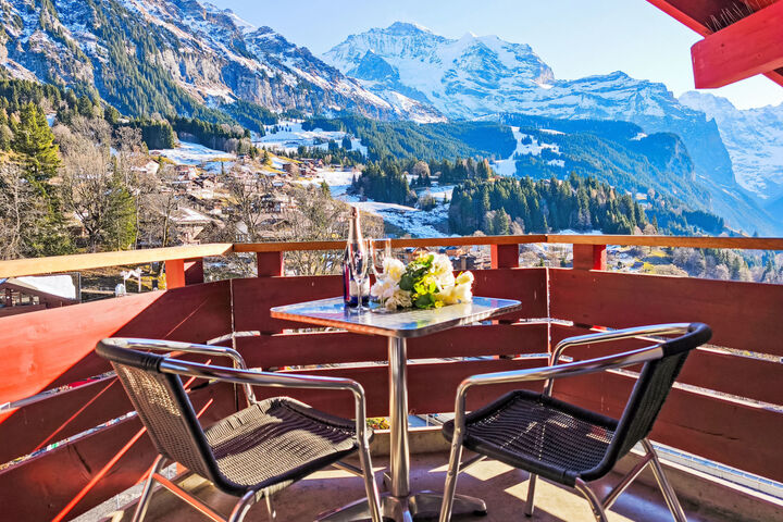 Apartment block "Eiger". In the centre of Wengen, in a central position. In the house: restaurant, lift, central heating system. Pre-arrival grocery service. Stepped path (10 steps) to the house. Shop, supermarket 50 m, restaurant, bakery 10 m, 1 minute walk to the centre, bus stop "Lauterbrunnen (by train)" 3.0 km, railway station "Wengen" 20 m, outdoor swimming pool 500 m. Cable car, skisport facilities 50 m, children's playground 100 m. Well-known lakes can easily be reached: Thunersee 13 km, Brienzersee 13 km. Please note: car-free holiday complex. Arrival via mountain railway. Additional accommodations can be booked. Arrival is only possible by train from Lauterbrunnen – 14 minutes driving time.