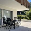 House Romaine is a modern, light and tastefully furnished apartment for up to 4 people close to the cable car and slopes. Located on the ground floor (90m2), with a large terrace with panoramic views. Featuring a master bedroom with 4-layer all natural COCO-MAT bed (180 x 220 cm) and a twin bedroom with two 2-layer COCO-MAT beds (90 x 200 cm) that can be connected to each other. The apartment provides a bath/wc and a shower/wc, both with sink and hairdryer. Organic cotton bed linen and towels are provided. Open plan area with kitchen, dining area and living room with Sonos sound system and a smart flatscreen TV you can use your own streaming services on. Free WiFi all through the apartment. The kitchen is fully equipped with dishwasher, oven, stove, Nespresso machine, toaster, kettle, cheese fondue set and raclette oven. The apartment benefits from large windows and panoramic views in all rooms. The large terrace is equipped with a garden table, comfortable chairs as well as two lounge chairs. There is also a shielded area for bikes. The Alpin Express cable car is within 100 meters walking distance of House Romaine. Your own private ski storage facility with boot dryer is within the building: no need to rent one at the slopes. Laundry room with washer and dryer is also available in the building. House Romaine EG is completely furnished with handcrafted all natural COCO-MAT furniture and warmed with geothermal heat. It is equipped to rent out for maximum 4 persons, is non-smoking and no pets are permitted.