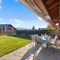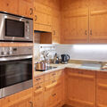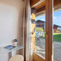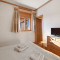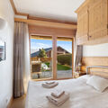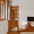 "Antares R05", 5-room apartment 140 m2, on the upper ground floor. Comfortable and wooden furniture furnishings: large living/dining room with cable TV (flat screen), radio and electric shutters. Exit to the terrace. 1 room with 1 double bed (2 x 80 cm, length 200 cm), bath/WC, cable TV and electric shutters. 1 room with 1 double bed (2 x 80 cm, length 200 cm), cable TV and electric shutters. Exit to the terrace. 1 room with 1 double bed (2 x 80 cm, length 200 cm), cable TV and electric shutters. Exit to the terrace. 1 room, without window with 1 double wall-trunk bed (2 x 80 cm, length 200 cm). Open kitchen (oven, dishwasher, 4 ceramic glass hob hotplates, toaster, kettle, microwave, electric coffee machine, Capsules for coffee machine (Nespresso) extra, raclette grill, fondue Set (chinoise, cheese)). Bath/WC, shower/WC. Floor heating. Large terrace 30 m2, south facing position. Terrace furniture. View of the mountains. Facilities: iron, hair dryer. Internet (WiFi, free). Garage space n 8 (1 car), height 220 cm, width 370 cm. Please note: non-smokers only. Maximum 2 pets/ dogs allowed.