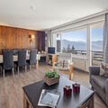 "Cransalpin Apt. 11 / Secteur 1", 4-room apartment 76 m2 on 4th floor. Beautiful and cosy furnishings: living/dining room with cable TV (flat screen), DVD. 1 room with 2 beds (90 cm, length 200 cm). 1 children's room with 1 x 2 bunk beds (90 cm, length 190 cm). 1 room with 1 french bed (180 cm, length 200 cm). Kitchen (4 hot plates, oven, dishwasher, toaster, kettle, microwave, electric coffee machine, Capsules for coffee machine (NESPRESSO) extra, raclette grill, fondue Set (cheese)). Bath/WC, shower, sep. WC. 3 balconies 30 m2, south facing position and west facing position, north facing position. Terrace furniture. Very beautiful view of the mountains, the valley and the resort. Facilities: iron, hair dryer. Internet (WiFi, free). Please note: non-smokers only.