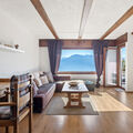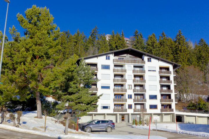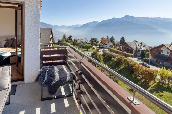 Cosy, comfortable residence "Lisière-Sud". Below Montana, in the district of La Combaz, 1.7 km from the centre, 2.3 km from the lake, 1.2 km from the skiing area, on a main road, south facing position. In the complex: lift, storage room for skis, central heating system, washing machine, tumble dryer (for shared use, extra). Parking (limited number of spaces) at the house. Shop 1.6 km, supermarket 1.7 km, restaurant 1.6 km, bus stop "Comba" 50 m, railway station "Funiculaire Montana Gare" 1.2 km, bathing lake "Moubra" 2.7 km, lake Grenon 2.3 km. Golf course (18 hole) 3.4 km, skisport facilities 1.2 km, ice rink 1.8 km. Please note: ski bus (free of charge).