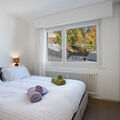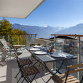 "Clair-Azur A 41", 3-room apartment 77 m2 on 4th floor. Comfortable and beautiful furnishings: living/dining room with cable TV. Exit to the balcony, south facing position and east facing position. 1 room, north facing position with 1 french bed (170 cm, length 200 cm). 1 room, east facing position with 1 x 2 bunk beds (80 cm, length 200 cm) (90 cm, length 200 cm). Open kitchen (dishwasher, 4 induction hot plates, toaster, kettle, microwave, electric coffee machine, Capsules for coffee machine (Nespresso) extra, raclette grill, fondue Set (chinoise)). Shower/WC. Large balcony 19 m2. Balcony furniture, deck chairs (1). Very beautiful view of the mountains. Facilities: iron, hair dryer. Internet (WiFi, free). Please note: apartment carpark side. Non-smokers only. Accommodation on level with and adjacent to north car park and road: for bedroom and shower room only. Small auxiliary oven.