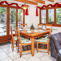 "Escapade", 4-room chalet 100 m2 on 2 levels. Comfortable and tasteful furnishings: entrance hall. Living/dining room with open-hearth fireplace, satellite TV, flat screen, CD-player, hi-fi system and DVD. Exit to the terrace, south facing position. Open kitchen (oven, dishwasher, 4 ceramic glass hob hotplates, microwave, freezer, electric coffee machine, Capsules for coffee machine (Nespresso) extra, raclette grill, fondue Set (chinoise, cheese)) with bar. Shower/WC. Upper floor: 1 room with 1 french bed (160 cm, length 200 cm), radio. Exit to the balcony. 1 room with 1 french bed (160 cm, length 200 cm), radio. Exit to the balcony. 1 room with 1 pull-out bed (2 pers. 2 x 90 cm, length 200 cm), radio. Bath/WC. Large terrace 60 m2. Terrace furniture, barbecue, deck chairs (6), box-room. Very beautiful view of the mountains and the valley. Facilities: washing machine, dryer, iron, children's high chair, baby cot for up to 3 year olds, hair dryer, logs (free). Parking (2 cars), garage. Please note: non-smokers only.