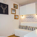 1-room studio 15 m2 on 6th floor. Renovated: living/dining room with 1 double sofabed (140 cm, length 200 cm), TV (flat screen). Kitchenette (dishwasher, 2 ceramic glass hob hotplates, toaster, kettle, microwave, electric coffee machine). Shower/WC. View of the mountains and the ski run. Please note: smoke alarm. Offer by a private individual according to Art. 155, IV of CGI. 732960173824