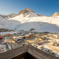 Tignes Val Claret: Residence "Rond Point des Pistes (Val Claret)", 4 storeys. 50 m from the skiing area. In the complex: lift, storage room for skis, central heating system. Shop 50 m, grocery 100 m, restaurant, bus stop 50 m, indoor swimming pool 2 km. Sports centre 800 m, mountain railway 50 m, skisport facilities, slopes 50 m, ski rental 20 m, ski bus stop 50 m, ski school. Nearby attractions: LAGON CENTRE AQUATIQUE 2 km, TIGNES ESPACE CENTRE SPORTIF 2 km. Well-known ski regions can easily be reached: TIGNES VAL D'ISERE 50 m. Hiking paths: PARC DE LA VANOISE 200 m. Please note: ski bus (free of charge).