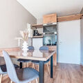 "Cimes de Caron 2207", 1-room apartment 24 m2 on 2nd floor, south facing position. Partly renovated in 2025, practical and modern furnishings: living/dining room with 1 x 2 bunk beds (80 cm, length 190 cm), TV (flat screen), electric heater. Exit to the balcony, south facing position. 1 open small room with 1 french bed (140 cm, length 190 cm), electric heater. Kitchenette (oven, dishwasher, 2 induction hot plates, toaster, kettle, microwave, electric coffee machine, cooking island). Bath/WC. Parquet floors. Balcony 2 m2, south facing position. Beautiful view of the mountains. Facilities: Internet (WiFi, extra). Please note: fridge without freezer, non-smokers only. Smoke alarm. 73257010415WF