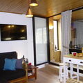 "Sérac A10", 1-room apartment 20 m2 on 10th floor. Bright, partly renovated in 2022, very beautiful and romantic furnishings: living/dining room with 1 double sofabed (1 x 140 cm, length 190 cm), TV (flat screen), electric heater. Small, Bay window with veranda, window onto the living room with 1 sleeping facility (1 x 90 cm, length 190 cm). Kitchenette (dishwasher, 2 ceramic glass hob hotplates, kettle, microwave, electric coffee machine, Capsules for coffee machine (Nespresso) extra) with dining nook. Shower/WC. Electric heating, Electric fireplace. Parquet floors. Very beautiful view of the mountains and the ski run. Facilities: Internet (WiFi, extra). Please note: non-smokers only. Maximum 1 pet/ dog allowed. Smoke alarm. 73257007928HT