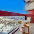 2-room apartment 36 m2 on 16th floor, north facing position. Simple furnishings: living/dining room with 1 bed (80 cm, length 190 cm), 1 sleeping facility (80 cm, length 190 cm). Exit to the balcony, north facing position. 1 room with 1 french bed (140 cm, length 190 cm). Exit to the balcony, north facing position. Alcove with 1 x 2 bunk beds (80 cm, length 190 cm). Kitchenette (4 hot plates, oven, toaster, kettle, microwave, electric coffee machine). Bathroom, sep. WC. Electric heating. Carpet. Balcony 9 m2, north facing position. View of the mountains and the valley. Facilities: hair dryer. Internet (WiFi, extra). Please note: maximum 1 pet/ dog allowed. Smoke alarm. Instead of an enclosed bedroom, some sleeping areas are located in an open-plan area (gallery, alcove, etc.). Offer by a private individual according to Art. 155, IV of CGI.