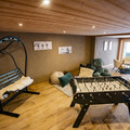 The modern and high end kitchen comes well equipped with oven, induction hob, dishwasher, fridge/freezer, toaster, kettle raclette and fondue set, a Nespresso coffee machine and a washer/dryer and is open plan to the dining area and comfortable lounge area, with its wood burning fireplace. There is a second living area with football machine which is great for any kids with you.