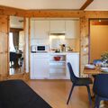 "Le Bristol A16", 2-room apartment 60 m2 on 1st floor. Spacious, comfortable and beautiful furnishings: large living/sleeping room with 1 sofabed (140 cm, length 200 cm), dining table, kitchen corner, shower/WC and TV (flat screen). Exit to the balcony, west facing position. 1 double bedroom with 2 beds (90 cm), bath/WC. Exit to the balcony, north facing position. Kitchenette (2 ceramic glass hob hotplates, toaster, kettle, microwave, electric coffee machine, raclette grill, fondue Set (cheese)). 2 balconies 15 m2, west facing position and north facing position. Balcony furniture. Side view of the mountains and the resort. Facilities: hair dryer. Internet (WiFi, free). Please note: non-smokers only.