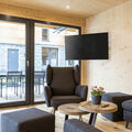 " 3a mit Sauna & Pool", 5-room apartment 112 m2, on the ground floor. Spacious and bright, tasteful furnishings: living/sleeping room with dining nook and satellite TV (flat screen). 1 double bedroom with shower/WC. 1 room with 1 x 2 bunk beds, 1 double bed. 2 double bedrooms. Open kitchen (oven, dishwasher, 4 ceramic glass hob hotplates, microwave, grill, electric coffee machine). 2 showers/WC, sep. WC, Sauna. Large terrace 70 m2. Terrace furniture. Beautiful view of the ski run and the countryside. Facilities: Internet (WiFi, free). Please note: non-smokers only. The property is one of a type of property or apartment. The villa has a private heated pool on the terrace.