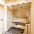 " 4a mit Sauna & Pool", 5-room apartment 112 m2. Spacious and bright, tasteful furnishings: living/dining room with dining nook and satellite TV (flat screen). 2 double bedrooms, each room with shower/WC. 1 double bedroom. 1 room with 1 x 2 bunk beds, 1 double bed. Open kitchen (oven, dishwasher, 4 ceramic glass hob hotplates, toaster, kettle, microwave, electric coffee machine). 2 showers/WC, sep. WC, Sauna. Terrace. Terrace furniture. Beautiful view of the ski run and the countryside. Facilities: hair dryer. Internet (WiFi, free). Please note: non-smokers only. The property is one of a type of property or apartment. The villa has a private heated pool on the terrace.