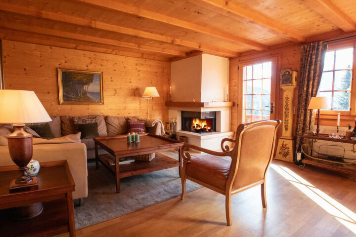 Beautiful chalet "La-Ina", 3 storeys, surrounded by trees. On the outskirts, 2 km from the centre of Villars sur Ollon, in a quiet, sunny position, 400 m from the skiing area, located by a road, in the countryside. In the house: central heating system. Motor access to the house. In Winter: please take snow chains, 4x4 car recommended in winter. Parking at 30 m. Shop 2 km, grocery 900 m, supermarket 1.8 km, restaurant 1.8 km, bar 1.8 km, bakery 2 km, café 900 m, bus stop "Villars - ROC D'Orsay" 850 m, railway station "Villars-sur-Ollon" 2 km, thermal baths "Lavey-les-Bains" 19 km. Sports harbour 25 km, golf course (18 hole) 9 km, indoor tennis centre 2.7 km, sports centre 2 km, mountain railway 2.1 km, ski lift 2.1 km, ski bus stop 900 m, ski school 2 km, children's ski school 2.7 km, ice rink 2 km, children's playground 700 m. Free ski bus service to the ski region Villars.