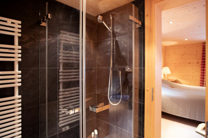 "Chalet Le Haut Pré", 8-room chalet 300 m2 on 3 levels, south facing position. Comfortable and beautiful furnishings: large living room with open-hearth fireplace and TV (flat screen). Exit to the garden, to the terrace, south facing position and west facing position. 1 room with 1 french bed (1 x 160 cm), bath/shower/WC. Exit east facing position. Large kitchen (oven, dishwasher, 5 induction hot plates, toaster, kettle, microwave, freezer, electric coffee machine, Capsules for coffee machine (Nespresso), raclette grill, fondue Set (cheese)) with dining table. Exit to the balcony, west facing position. Sep. WC. On the lower ground floor: large lounge. Upper floor: 1 room with 1 french bed (1 x 180 cm), bath/shower/WC. Exit to the balcony. 1 room with 1 french bed (1 x 180 cm). 1 room with 2 beds (90 cm). Exit to the balcony, south facing position. 1 room with 1 french bed (1 x 160 cm). Exit to the balcony, south facing position. Walk-through room with 1 bed (80 cm). 2 baths/WC. Large balcony, south facing position, small balcony, south facing position, large terrace, south facing position and west facing position. Terrace furniture. Partial view of the mountains. Facilities: washing machine, dryer. Internet (WiFi, free). Parking (2 cars). Please note: non-smoking house. Maximum 1 pet/ dog allowed.