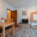 2-room apartment 48 m2. Object suitable for 4 adults. Bright, simple and practical furnishings: entrance hall. Living/sleeping room with 1 sofabed, dining table and satellite TV (flat screen), electric heating. Exit to the balcony. 1 double bedroom. Exit to the balcony. Small kitchen (2 hot plates, toaster, kettle, microwave, electric coffee machine). Bath/WC. Very beautiful view of the mountains. Facilities: Internet (WiFi, free). Please note: apartment street side. 1 pet/ dog allowed. 50403-000513-2023
