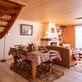 "Le Mont Blanc 14", 4-room penthouse 93 m2 on 2 levels, south facing position. Comfortable and beautiful furnishings: living/dining room with open-hearth fireplace and dining table. Exit to the balcony, south facing position. 1 room with 2 beds (90 cm). Open kitchen (oven, dishwasher, 4 ceramic glass hob hotplates, toaster, kettle, microwave, freezer, electric coffee machine, Capsules for coffee machine (Nespresso) extra, raclette grill, fondue Set (cheese)) with bar. Bath/WC. Upper floor: 1 room with 1 french bed (1 x 160 cm), shower/WC. Exit to the balcony, south facing position. 1 children's room with 2 beds (80 cm). 2 balconies, south facing position. Very beautiful panoramic view of the mountains. Facilities: baby cot, hair dryer. Internet (WiFi, free). Parking (1 car). Please note: non-smokers only. No lift.