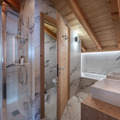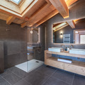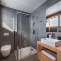 Bathroom 1: Double hand basin, Shower, Towel dryer, and Toilet