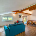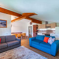 "Mawa", 3-room apartment 106 m2, on the top floor. Partly with sloping ceilings, cosy furnishings: living/sleeping room with 1 double sofabed, dining table, satellite TV and international TV channels (flat screen). 2 rooms, each room with 1 sofabed, 1 double bed, satellite TV and international TV channels (flat screen). Open kitchen (oven, dishwasher, 4 ceramic glass hob hotplates, toaster, kettle, electric coffee machine). Shower, sep. WC, double hand-basin. Heating. Parquet floors. Beautiful panoramic view of the mountains and the valley. Facilities: Internet (WiFi, free). Please note: non-smokers only. Note: Access via external spiral staircase or internally.