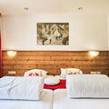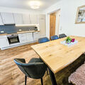 "Inn", 4-room apartment 96 m2. Beautiful and cosy furnishings: 1 room with 1 x 2 bunk beds (90 cm, length 200 cm), 1 double bed, separate WC, bath/shower and satellite TV (flat screen). Exit to the balcony. 1 room with 1 sofabed, 1 double bed, separate WC, shower and satellite TV (flat screen). Exit to the balcony. 1 small double bedroom with 1 bed (160 cm, length 200 cm), satellite TV (flat screen). Kitchen-/living room (4 induction hot plates, toaster, kettle, microwave, electric coffee machine, Capsules for coffee machine (Nespresso) extra) with 1 sofabed. Exit to the balcony. Wooden floors. Large balcony 26 m2. Balcony furniture. Marvellous view of the mountains and the resort. Suitable for families.