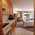 "Résidence Bristol 12b", 1-room apartment 21 m2. Simple and comfortable furnishings: living/sleeping room with 1 french bed (1 x 140 cm, length 200 cm), dining table and cable TV (flat screen). Exit to the balcony, north facing position. Small kitchenette (oven, 4 ceramic glass hob hotplates, toaster, kettle, electric coffee machine, raclette grill). Shower/WC. Large balcony, north facing position. No view. Facilities: hair dryer. Internet (WiFi, free). Parking (1 car). Please note: fridge without freezer, non-smokers only.
