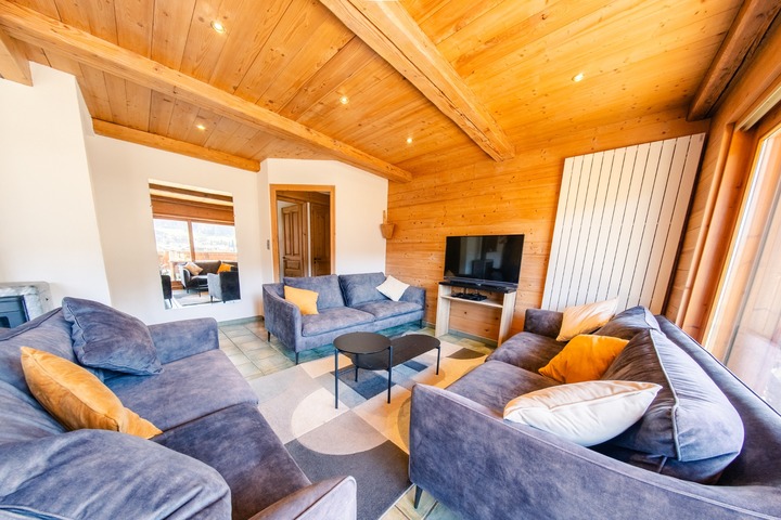 Chalet Grand Belvedere is a modern and comfortable single-storey chalet, extremely well located for the ski lifts and amenities of Morzine. Spaciously laid out, the property features a comfortable open-plan living and dining area, boot room with heated boot warmers, large balcony, and panoramic floor to ceiling windows with breathtaking views across central Morzine and the valley below.