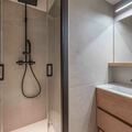 Bathroom 1: Shower, Hairdryer, Towel dryer, and Single hand basin