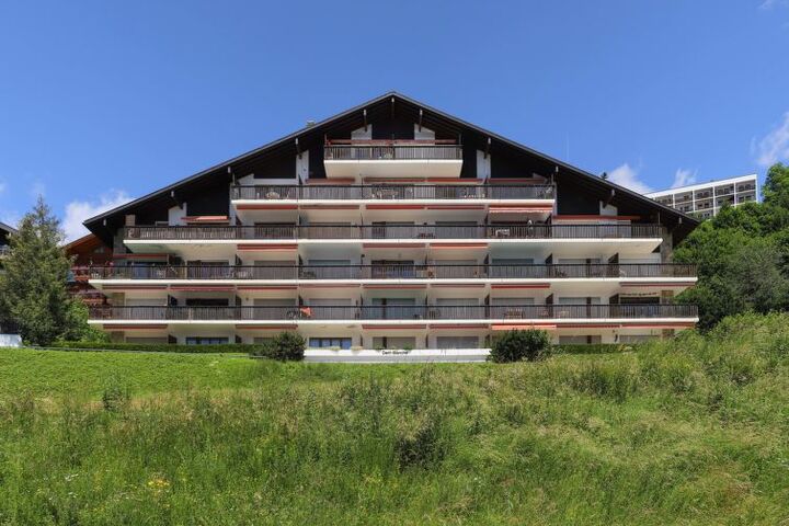 Residence "Marigny Dent-Blanche". In the district of Marigny, 1.5 km from the centre of Montana, in a quiet, sunny position, 150 m from the edge of the forest, 1.3 km from the lake, south facing position. In the complex: lift, storage room for skis, central heating system, washing machine (extra), tumble dryer (for shared use), drying room. Parking (limited number of spaces). Shop 1.5 km, supermarket 1.6 km, restaurant 1.5 km, bakery 900 m, bus stop "Marigny" 50 m, railway station "Funiculaire Montana Gare" 1.1 km, bathing lake "Moubra" 1.3 km. Golf course (18 hole) 3 km, tennis 1.4 km, indoor tennis centre 1.4 km, skisport facilities 1.3 km, ice rink 2 km. Well-known lakes can easily be reached: Lac Grenon 2.5 km, Etang Long 3 km. Please note: ski bus (free of charge).