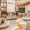 The chalet has been beautifully built, using the finest mix of traditional and modern features, which is most apparent in the open-plan living area on the chalet's top floor, where you will find the living, dining and kitchen areas. Here, you will discover vaulted ceilings, exposed beams of refined wood, a stone fireplace and a gloriously crafted live-edge dining table fit for up to 18 guests. Combine this with plush, designers sofas, stylish modern light fixtures, a fully-equipped modern kitchen and eye-catching ornamentation and you get a uniquely luxurious space to relax and dine in. A balcony at the end of the kitchen dining area allows you to escape to the fresh mountain air, with views of the foot of the slopes, the mountains leading down to Tignes Les Brévières and the charming village church.