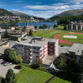 St. Moritz Bad: Simple apartment house "Casa Polo", 4 storeys, built in 1967, renovated in 2009. In the resort 300 m from the centre of St. Moritz Bad, in a central position in the residential district, 300 m from the lake, 750 m from the skiing area. In the house: lift. In Winter: please take snow chains. Parking space n 4 (for 2 cars) on the premises. Shop 300 m, grocery 200 m, supermarket 500 m, restaurant 200 m, bus stop "St. Moritz Bad - Kath. Kirche" 150 m, indoor swimming pool 450 m. Golf course (18 hole) 8 km, surf school 2.8 km, sailing school 500 m, indoor tennis centre 1 km, walking paths from the house 200 m, cable car, slopes 750 m, ski rental 200 m, ski bus stop 100 m, cross country ski track 300 m, ice rink 250 m, children's playground 200 m. Nearby attractions: Segantini-Museum in St. Moritz 2.2 km, Engadiner Museum 1.2 km, Milli Weber Haus 2.9 km, Olympia Bob Run Museum 2.6 km, Nietsche Museum 9.5 km. Well-known ski regions can easily be reached: Corviglia Piz Nair 900 m, Corvatsch - Furtschellas - Surlej 6.5 km, Diavolezza Lagalb 20 km. Well-known lakes can easily be reached: St. Moritz See 300 m, Silvaplana See 5.2 km, Silser See 9.5 km. Hiking paths: Stazerwald & Stazersee, Corviglia- Piz Nair, Muottas Muragl. Please note: Loading and unloading of baggage is possible at the holiday house. The keys‘ handover takes place by the agency Interhome in St. Moritz Bad.