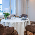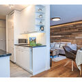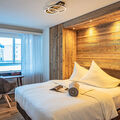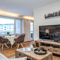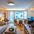 "Chesa Fleury", 2-room apartment 60 m2 on 3rd floor. Fully renovated in 2025, comfortable furnishings: living/dining room with winter garden with dining table and TV (flat screen). Exit to the balcony, south-west facing position. 1 double bedroom with 1 french bed (160 cm, length 200 cm). Open kitchen (oven, dishwasher, 4 ceramic glass hob hotplates, toaster, kettle, electric coffee machine, Capsules for coffee machine (Nespresso) extra, fondue Set (cheese)) with dining table. Exit to the balcony. Bath/WC. Heating. Parquet floors. Small balcony. Balcony furniture. Side view of the mountains and the resort. Facilities: hair dryer. Internet (WiFi, free). Garage (1 car), height 195 cm, width 205 cm. Please note: non-smokers only, non-smoking house.