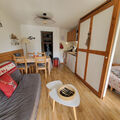 "V du Bachat Arolles A", 2-room apartment 32 m2, on the ground floor. Object suitable for 4 adults. 1 room with 2 beds and TV. Living room with 1 sofabed and 1 x 2 bunk beds, 1 pull-out bed. Kitchen (4 hot plates, dishwasher, toaster, kettle, microwave, electric coffee machine). Bath/WC. Terrace 11 m2. Please note: non-smokers only. Offer by a commercial proprietor according to Art. 155, IV, CGI