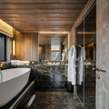 Bathroom 1: Bathtub, Double hand basin, Walk-in shower, and Towel dryer