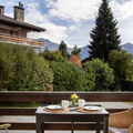 "Galaxie 003", 2-room apartment 42 m2, on the upper ground floor. Object suitable for 2 adults. Spacious, comfortable and beautiful furnishings: 1 room with 1 bed (160 cm, length 200 cm). Living/dining room. Exit to the terrace. Kitchenette (3 hot plates, oven, toaster, kettle, electric coffee machine, Capsules for coffee machine (nespresaso) extra, fondue Set (cheese)) with bath/WC. Parquet floors. Balcony, south facing position. Beautiful view of the mountains. Facilities: hair dryer. Please note: non-smokers only.