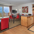 "Les Combins 30", 3-room apartment 95 m2 on 3rd floor, south facing position. Spacious and bright, beautiful and tasteful furnishings: large living/dining room with TV and electric heating. 1 large room with 1 double bed (1 x 180 cm, length 200 cm). Exit to the terrace. 1 room with 1 x 2 bunk beds (90 cm, length 200 cm). Exit to the terrace. Open kitchen (4 ceramic glass hob hotplates, toaster, kettle, microwave, freezer, electric coffee machine). Bath/WC, shower/WC. Parquet floors. Large terrace, south facing position. Terrace furniture, deck chairs (1). Very beautiful panoramic view of the mountains. Facilities: hair dryer. Internet (WiFi, free). Parking (roofed). Please note: non-smokers only.