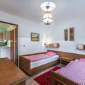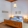 "Landhaus Kunze", 4-room semi-detached house 80 m2 on 2 levels. Cosy furnishings: living/dining room with dining table, satellite TV and international TV channels (flat screen). Exit to the terrace. 1 room with 2 beds. Small kitchen (oven, 4 ceramic glass hob hotplates, kettle, electric coffee machine). Bath/shower/WC. Heating. Upper floor: 1 room with 2 beds. Exit to the balcony. 1 double bedroom. Exit to the balcony. Parquet floors. Terrace, garden. Terrace furniture. Please note: non-smokers only. Maximum 1 pet/ dog allowed.