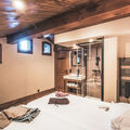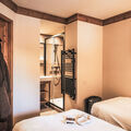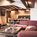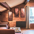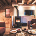 "Le Hameau de la Sapinière", 5-room terraced house 95 m2 on 3 levels. Tasteful and cosy furnishings: 1 room with 1 french bed (160 cm). 1 room with 2 beds. 2 baths or showers/WC. Upper floor: large living room with open-hearth fireplace, dining table and TV. Exit to the balcony. Kitchen (oven, dishwasher, 3 ceramic glass hob hotplates, toaster, kettle, microwave, electric coffee machine). Shower, Sauna. 2nd upper floor: 2 rooms, each room with 2 beds. Sep. WC, bath or shower. Heating. Balcony. Beautiful view of the mountains. Facilities: safe, hair dryer. Internet (WiFi, free). Please note: non-smokers only. Maximum 1 pet/ dog allowed. The property is one of a type of property or apartment.