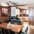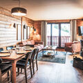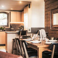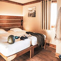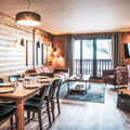 "Le Hameau de la Sapinière", 3-room apartment 72 m2. Tasteful and cosy furnishings: living/dining room with open-hearth fireplace, dining table and TV. Exit to the balcony. 1 room with 1 french bed (160 cm). 1 room with 2 beds. Alcove with 1 x 2 bunk beds. Kitchenette (oven, dishwasher, 3 ceramic glass hob hotplates, toaster, kettle, microwave, electric coffee machine). 2 baths or showers/WC. Heating. Balcony, south facing position. Beautiful view of the mountains. Facilities: safe, hair dryer. Internet (WiFi, free). Please note: non-smokers only. Maximum 1 pet/ dog allowed. The property is one of a type of property or apartment. Instead of an enclosed bedroom, some sleeping areas are located in an open-plan area (gallery, alcove, etc.).