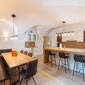 This centuries old farmhouse lies surrounded by well-known skiing areas in the village of Niedernsill. The original farmhouse was renovated and converted into two luxury holiday homes. The ground floor has a great atmosphere with the beautiful large hall with vaulted ceilings, yet it's pleasantly warm because of the modern underfloor heating. The hall gives access to 4 bedrooms, all furnished with stunning details. The spacious kitchen is fitted with modern equipment and features a large dining table. Adjacent to the kitchen is a separate living room with a spacious lounge area and direct access to the sunny terrace, which offers splendid views of Hohe Tauern National Park. Guests can make use of the private sauna in the house and are given a parking spot. A supermarket nearby makes it easy to get groceries on foot. In winter, it only takes a few minutes by car to get to Kaprun and Zell am See. In summer, guests can enjoy the Hohe Tauern National Park, the famous Krimml waterfalls, the lakes of Kaprun and ofcourse the hiking and mountain biking. There are also 2 beautiful golf courses in the area.